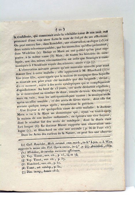 28 pages. (21x17 Cm). Dérelié. Petites rousseurs. Premiers cahiers totalement déreliés. Compan est originaire d'Arles, dans les Bouches-du-Rhône. Tribut Académique présenté et publiquement soutenu à la Faculté de Médecine de Montpellier le 28 Mai 1825 pour obtenir le grade de Docteur en Médecine. La Catalepsie est la suspension complète du mouvement volontaire des muscles. Affection nerveuse.