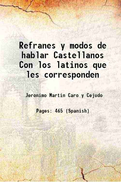 Refranes y modos de hablar Castellanos Con los latinos que les corresponden 1792