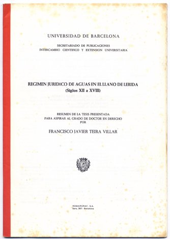 Regimen Jurídico de Aguas en el Llano de Lérida (Siglos XII-XVIII). Resumen de Tesis Doctoral.
