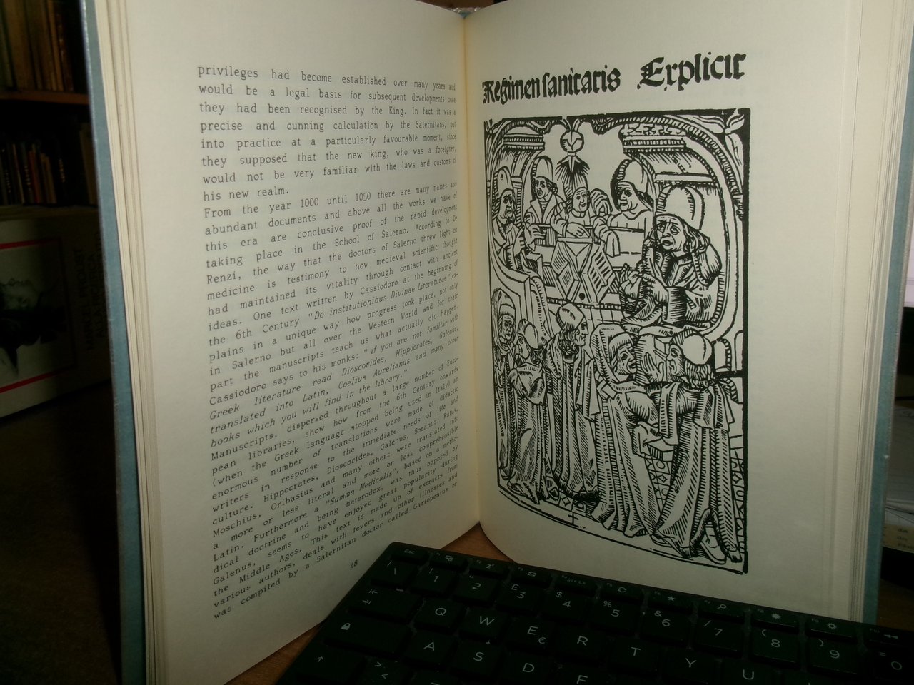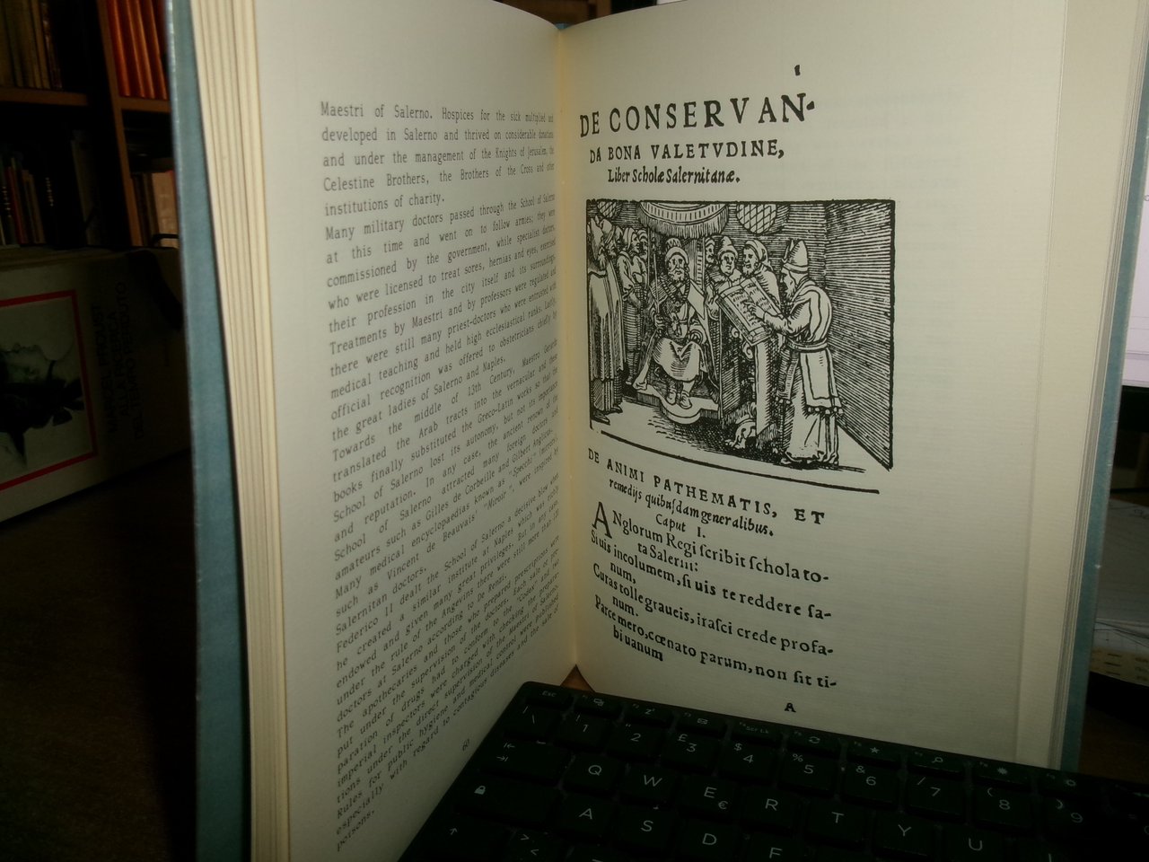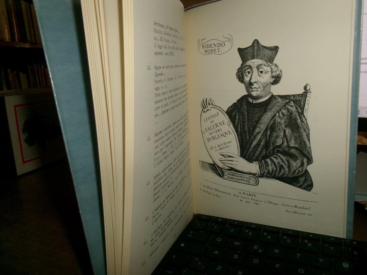 Gorgias Gambacorta - Alberto Giordano. REGIMEN SANITATIS SALERNITANUM BIBLIOGRAFIA a BIBLIOGRAPHY 1474-1888. Gambacorta. Milano, ARS Medica Antiqua Editrice, 1983. In-8°, cart. edit. con sovracopertina, protetto da velina trasparente. 135 pp. + un foglio di errata corrige con riproduzioni di frontespizi f.t. Come nuovo protetto da velina trasparente con testo italiano/inglese. Uff. C - IV - 7 - 2