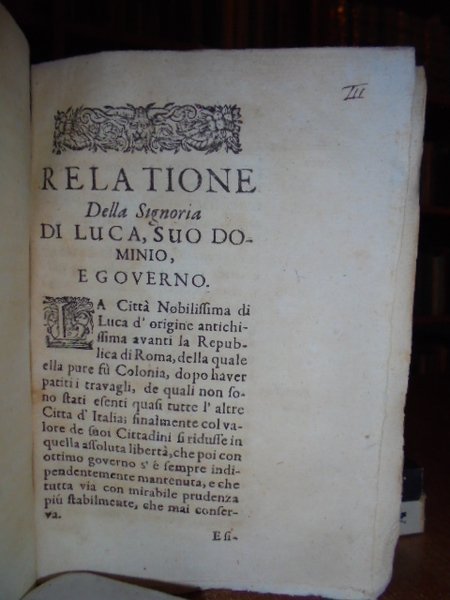 (Genova - Bologna - Lucca). GUALDO Priorato, Galeazzo. In Colonia, appresso Pietro de la Place, 1668. Relatione della Città di Genova e suo Dominio. In - 8°, br., cop. varese. (4), 118, 1 f. bianco. (Segue:) Relatione della Signoria di Luca, suo Dominio e Governo. 48 pp. (Segue:) Relatione della Città e stato di Bologna. 71 pp. Tre opuscoli riuniti, esemplare intonso con barbe; alcune pagine arrossate. Lozzi, 2124 e 2234. Bil, Platneriana, 153 e 185. Neg. Bob. 4