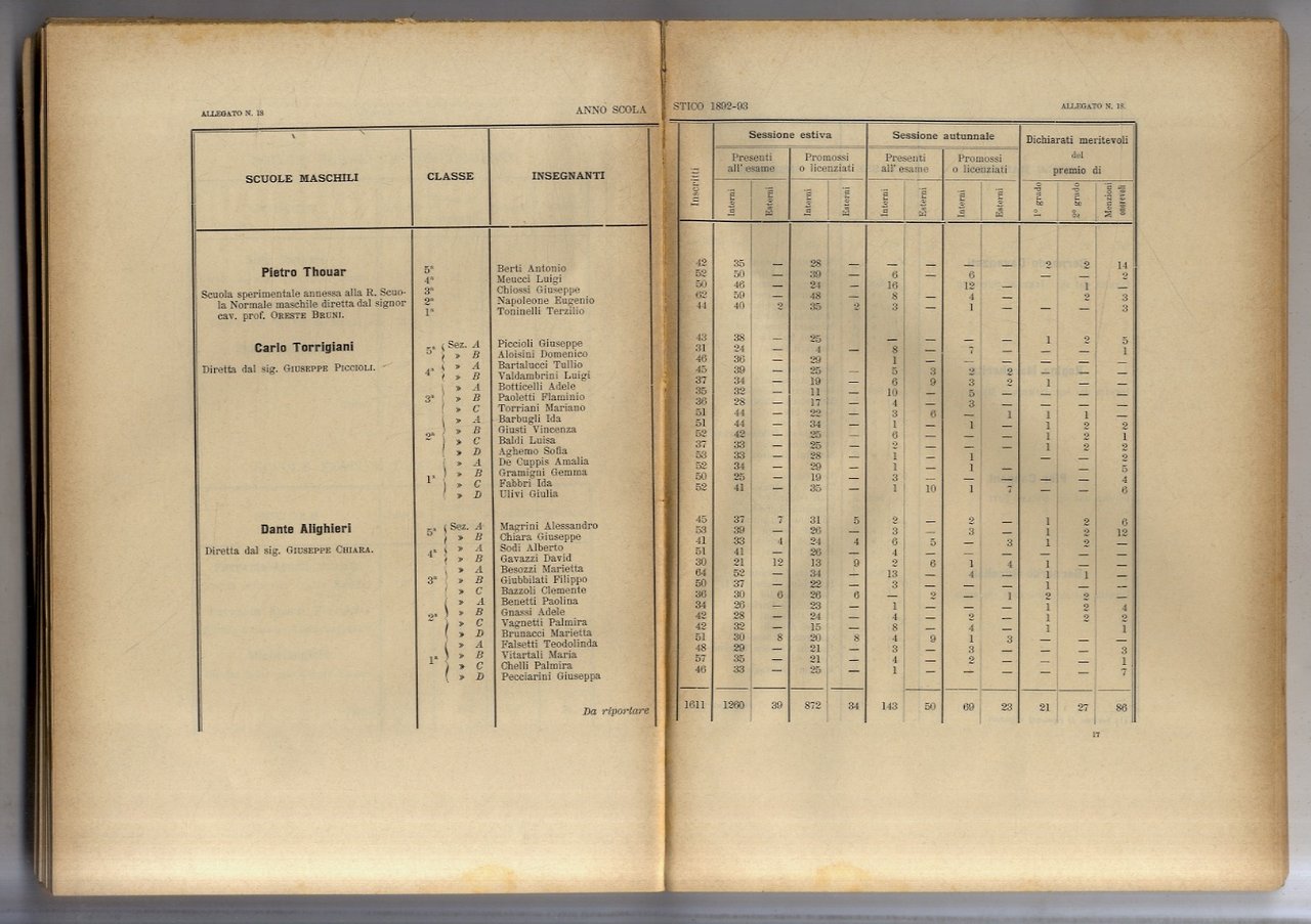 Firenze, Tipografia Cappelli, 1895, in-8 grande, br. editoriale, pp. XXII, 177, [1] + [526] di allegati. Relazione densa di dati statistici su tutta l'organizzazione e gli interventi in città nei primi anni '90 del XIX secolo. Manca l'angolo inferiore esterno della copertina posteriore.