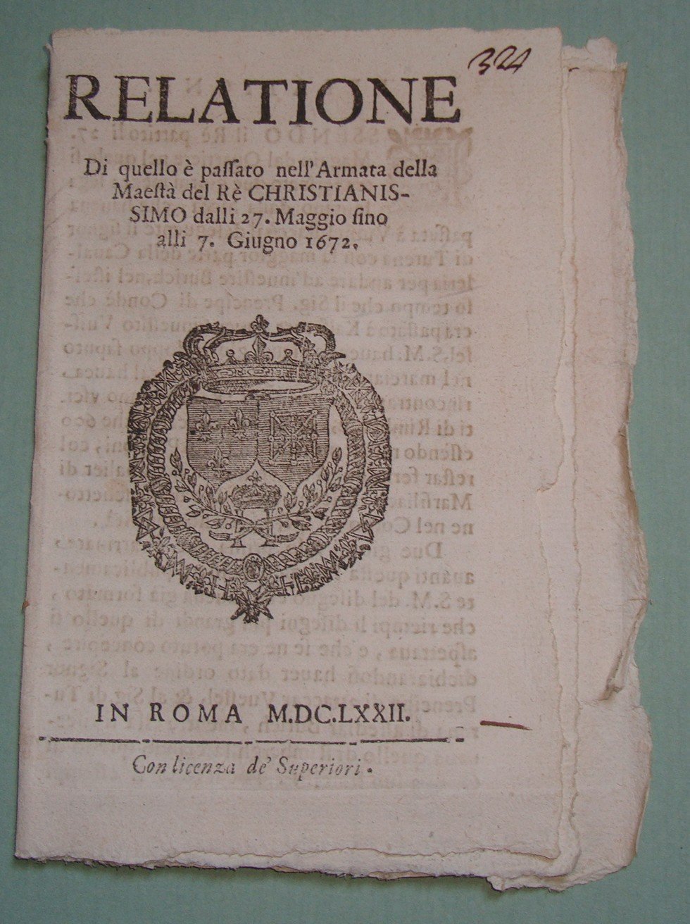 Relazione di quello è passato nell’Armata del Re Christianissimo dalli 27 maggio fino alli 7 giugno 1672.