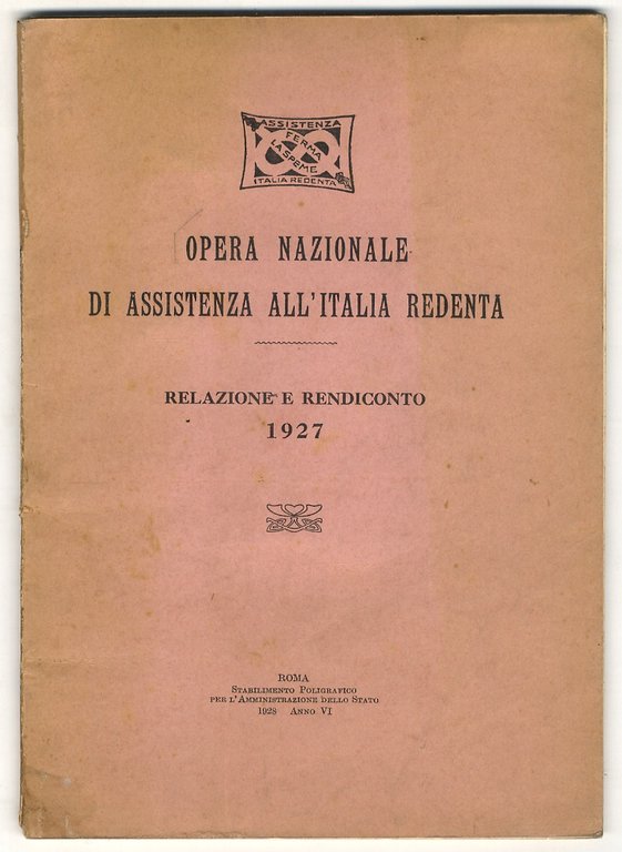 Roma, Stabilimento Poligrafico per l'Amministrazione dello Stato, 1928, in-8 grande, br. editoriale, pp. 79, [1]. Conti consuntivi degli uffici Centrale di Trento, di Trieste e di Zara. Ottime condizioni.