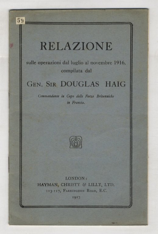 Relazione sulle operazioni dal luglio al novembre 1916 compilata dal Gen. Sir. Douglas Haig.