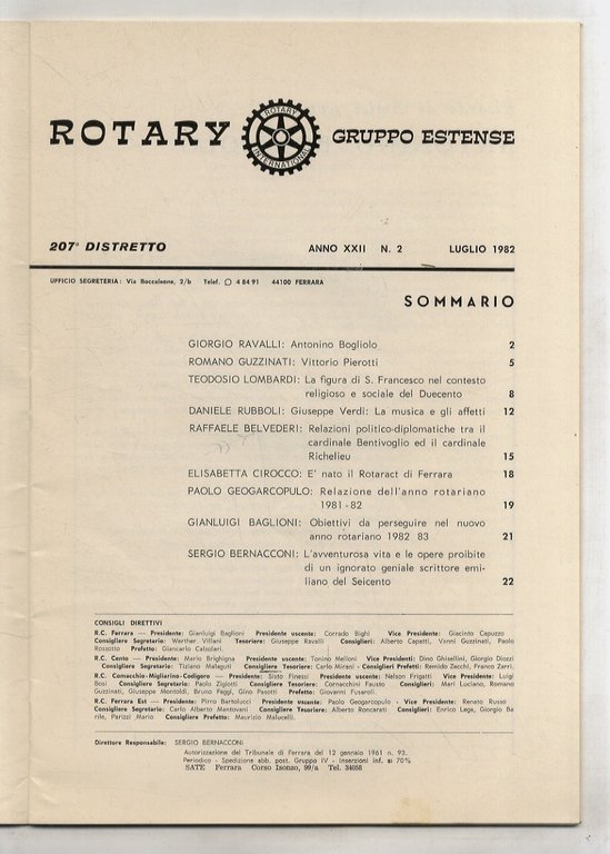 Relazioni politico-diplomatiche tra il cardinale Bentivoglio ed il cardinale Richelieu.(In: "Rotary - Gruppo Estense". Anno XXII, N. 2).