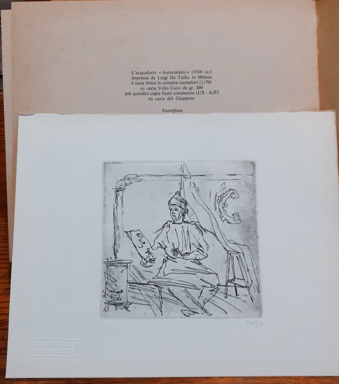 I ed. Martano: Marzo 1976 (I ed.: Milano, Campografico 1937). XVI oblungo/ 132/ brossura illustrata in b/n (in prima e quarta di copertina, è riprodotta la "Composizione", 1936, tavola di legno e stucco colorato, cm 46x56). Con illustrazioni in nero dell'A.. Allegata acquaforte dell'A. in nero protetta da carta velina: l'acquaforte "Autoritratto" (1936 ca.) impressa da Luigi De Tullio in Milano è stata tirata in settanta esemplari (1/70) su carta Velin Cuve da gr 2600 più quindicci copie fuori commercio (I/X - A/E) su carta del Giappone. Esemplare 20. Layout di Roberto Sambonet. Stato buono (pagine lievemente brunite). Indice: Metamorfosi prima - Metamorfosi seconda - Metamorfosi terza - Metamorfosi quarta - Metamorfosi quinta - Metamorfosi sesta - Significati ritmici del vento - Il ritmo in Delacroix - Renato Birolli a Vincent Van Gogh - Paolo Fossati; Il momento della metamorfosi - Francesco Bartoli; La contrazione visionaria - Sandro Bini; Nascita delle Metamorfosi - Nota all'edizione di Campografico.