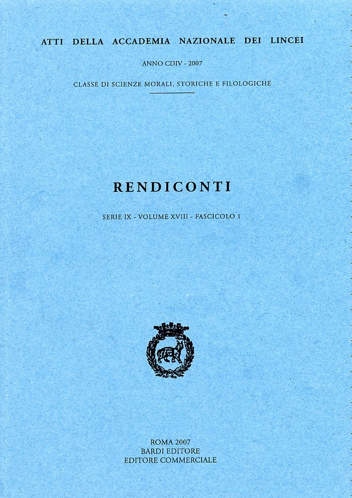 Roma, 2007; br., pp. 160, ill. b/n, cm 17x24. (Rendiconti dell'Accademia Nazionale dei Lincei. Serie IX. Volume XVIII. Fascicolo I). ISSN 0391-8181.