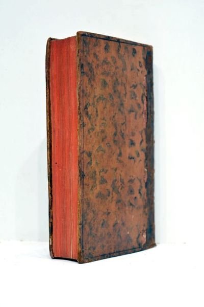 Tome 2 seul. 533 pages. (17,5x10,5cm). Pleine basane. Dos à nerfs richement décoré en or. Pièce de titre maroquin rouge. Filet doré sur les coupes. Tranches rouges. Gardes de papier marbré. Reliure usagée. Dos frotté. Manques de cuir à la coiffe inférieure et aux plats. Coupes et coiffes élimées. Quelques rousseurs à l'intérieur. Etat intérieur agréable. Exemplaire relié à l'époque dans une pleine basane qui mérite une restauration importante.