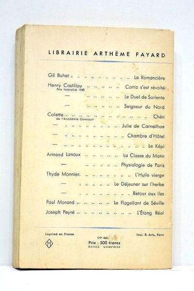 Paris, Arthème Fayard, 1954.,