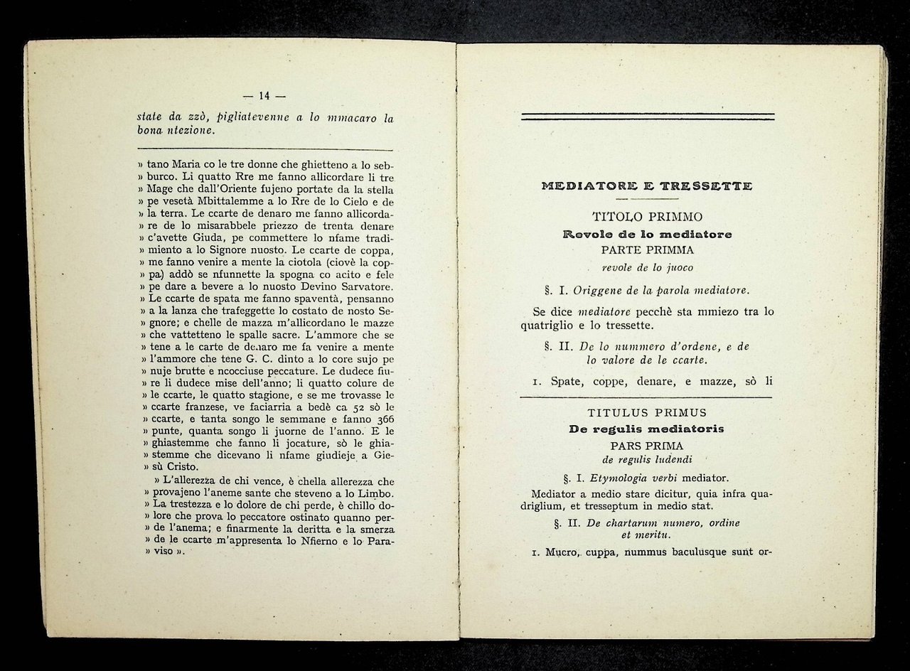 Revole De Iocare e Pavare Lo Mediatore e Tressette Chitarella Scopone 1937
