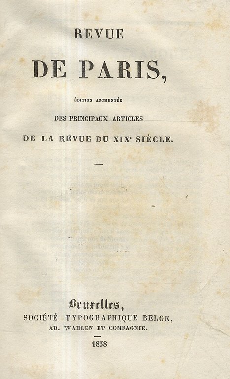 Revue de Paris, édition augmentée des principaux articles de la Revue du XIX siècle.