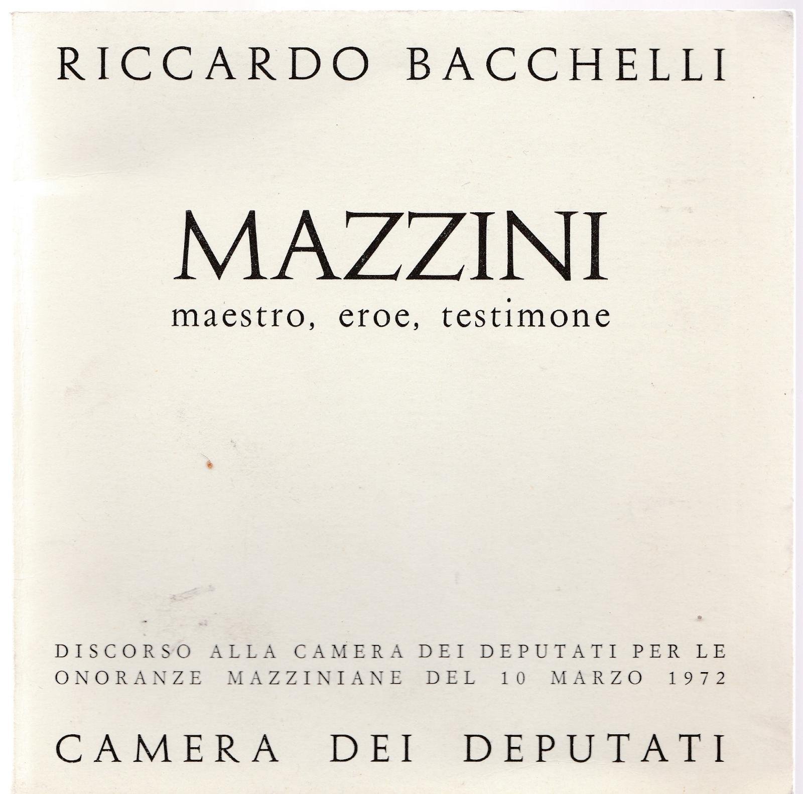 RICCARDO BACCHELLI MAZZINI MAESTRO EROE TESTIMONE DISCORSO ALLA CAMERA DEI DEPUTATI PER LE ONORANZE MAZZINIANE DEL 10 MARZO 1972 L4774 COPERTINA MORBIDA EDITORIALE CON QUALCHE LIEVE ALONE E UNA PIEGA AL PIATTO ANTERIORE, INTERNO IN OTTIMO STATO N. PAG. 24 CM. 18 X 18