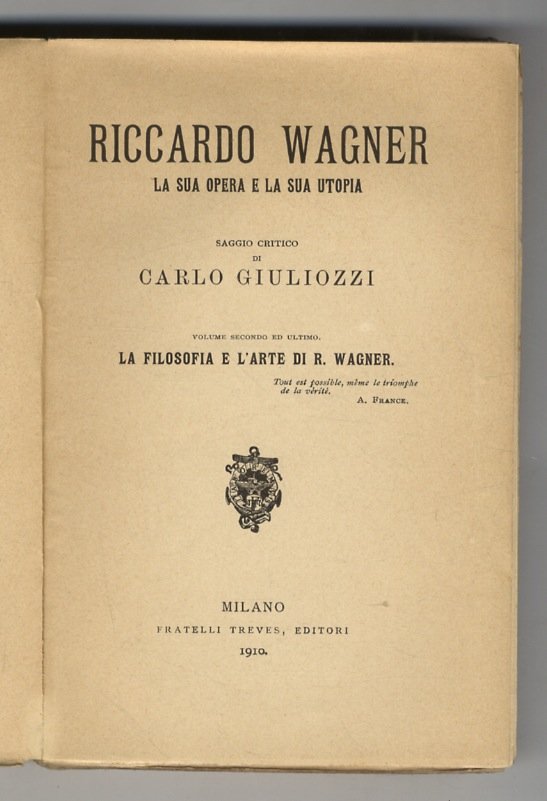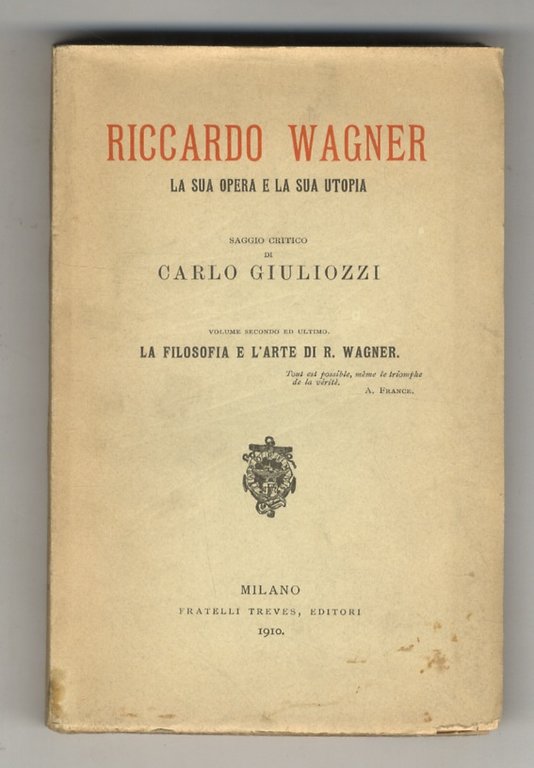 Riccardo Wagner, la sua opera e la sua utopia. Saggio critico. Volume secondo ed ultimo: La filosofia e l'arte di R. Wagner.
