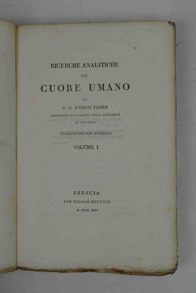Ricerche analitiche sul cuore umano di Enrico Feder professore di filosofia nella università di Gottinga traduzione dal tedesco.