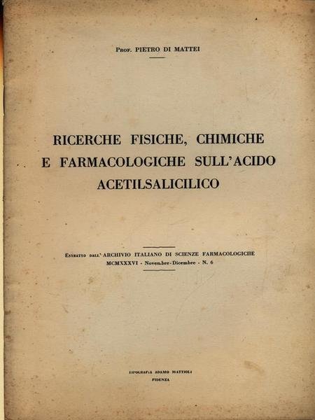 Ricerche fisiche, chimiche e farmacologiche sull'acido acetilsalicilico - Estratto