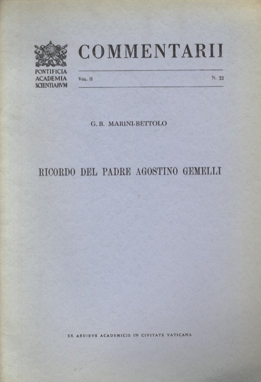 Città del Vaticano, Pontificia Academia Scientiarum, s.a., in-8, brossura editoriale. Estratto da "Commentarii", vol. II N. 22.
