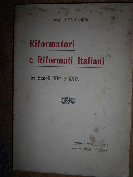 Augusto, Jahier. Firenze, Società Editrice Claudiana, 1924. Riformatori e Riformati Italiani dei Secoli XV e XVI. Trenta succinte Biografie con illustrazioni e Appendice. In-8°, br. 199 pp. Piano anteriore con lievi macchioline, interno in ottimo stato di conservazione. Neg. esot. mob. 10 entro busta trasp.