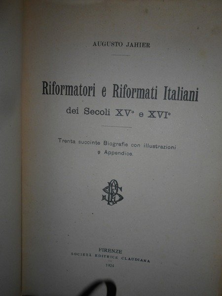 Riformatori e Riformati Italiani dei Secoli XV e XVI. Trenta succinte Biografie con illustrazioni e Appendice | Libri antichi e moderni | Augusto, Jahier