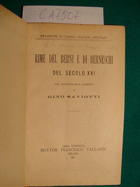 Rime del Berni e di Berneschi del secolo XVI con introduzione e commento di Gino Saviotti