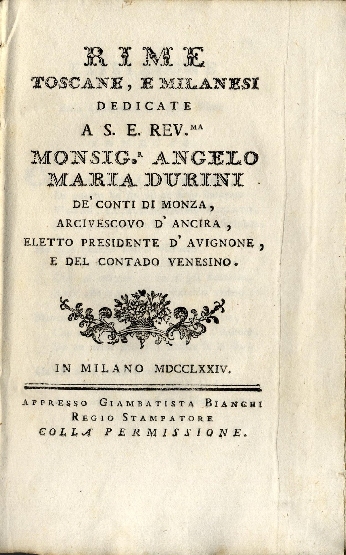 - Milano, Giambattista Bianchi, 1774,