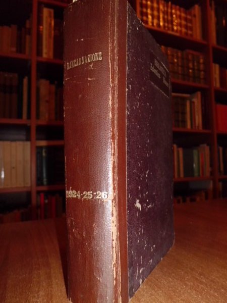 RINCARNAZIONE. Rivista di cultura spirituale. Anno I, II, III. Palermo, T. Virzi, 1924 - 1926. 3 annate in un volume in - 8°, m. tela. 196; 192; 198 pp. Rara raccolta di studi di illustri occultisti. Neg. mob. 5