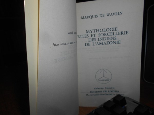 MARQUIS DE WAVRIN. Monaco, Editions d Rocher, 1979. RITES, MAGIE et SORCELLERIE des INDIENS de l' AMAZONIE. In-16° grande, cartoncino plastificato edit. con risvolti. 393, (1) pp. con illustrazioni in tavole fuori testo. Copertina posteriore con un piccolo segno, interno ottimo. Uff. stanzetta mob. piccolo a destra