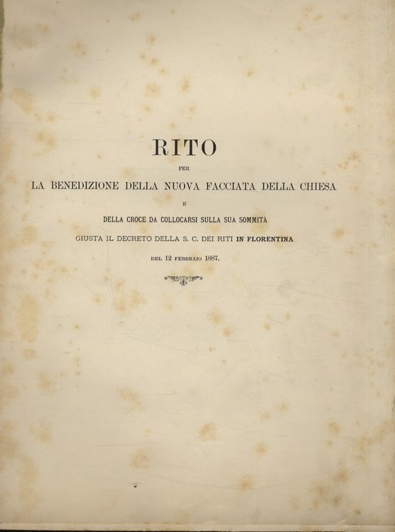 Rito per la benedizione della nuova facciata della chiesa e della croce da collocarsi sulla sua sommità. Giusta il decreto della S.C. dei Riti in Florentia del 12 febbraio 1887.