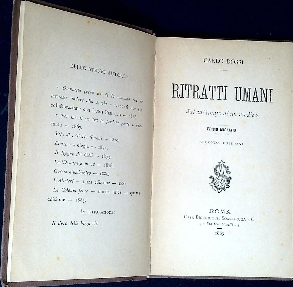 Dossi, Carlo Ritratti umani : dal calamajo di un medico. Roma, Sommaruga 1883, 127 p. ; 17 cm (61938)