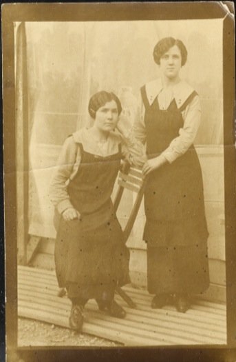 [Ritratto di due donne, una seduta ed una in piedi, in abiti da lavoro].
