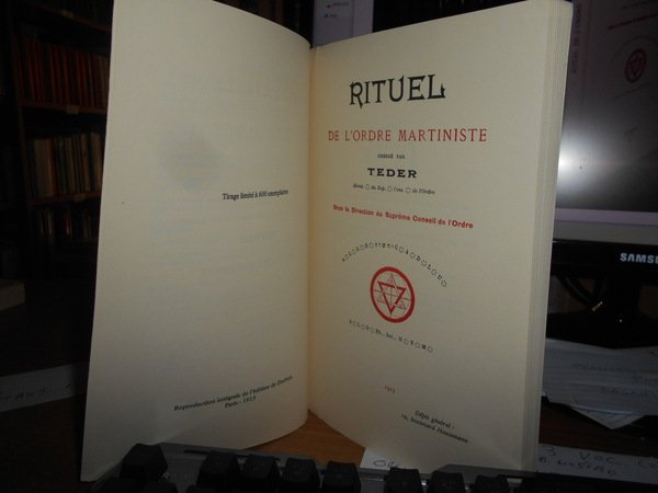 dressé par TEDER. Paris, Télètes, 1990. RITUEL de L' ORDRE MARTINISTE. In-8°, cartoncino edit. 168 pp. con alcune illustrazioni n.t. In ottimo stato di conservazione. In tiratura limitata a 600 esemplari. Neg. Mass. mob. P.