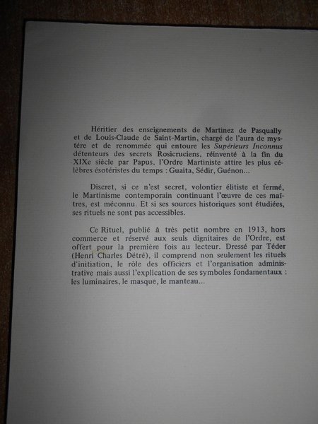 RITUEL de L' ORDRE MARTINISTE