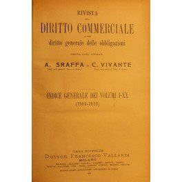 Rivista del Diritto Commerciale e del diritto generale delle obbligazioni. Diretta da A. Sraffa e C. Vivante. Indice generale dei volumi I-XX (1903-1922)