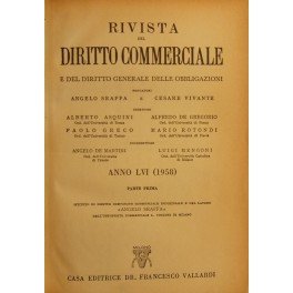 Rivista del Diritto Commerciale e del diritto generale delle obbligazioni. Fondata da A. Sraffa e C. Vivante. Diretta da A. Asquini, A. De Gregorio, P. Greco, M. Rotondi, A. De Martini, L. Mengoni. Vol. LVI - 1958