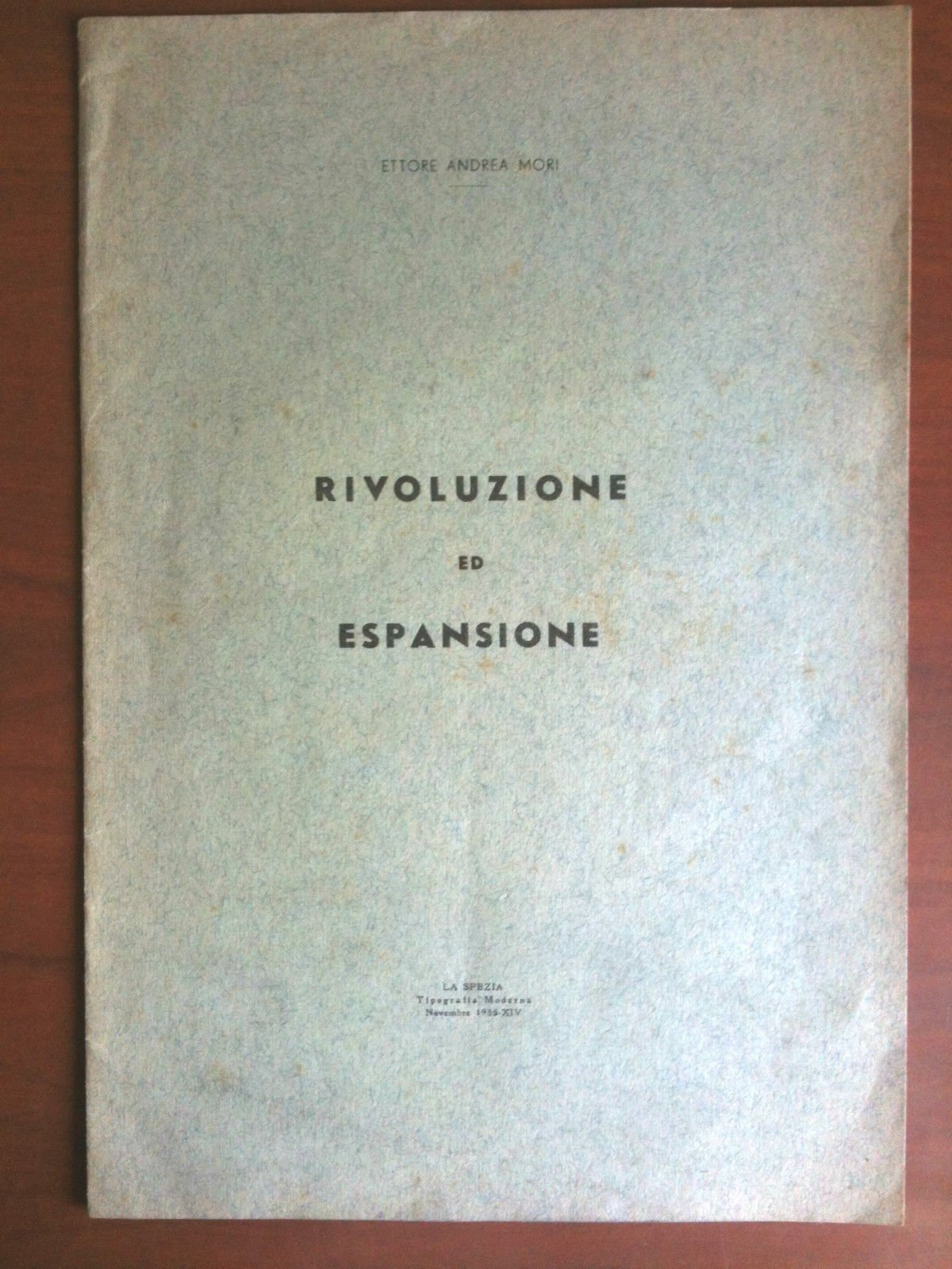 RIVOLUZIONE ED ESPANSIONEEttore Andrea Moriin pirima pagina dedica e firma autografaLa Spezia Tipografia Moderna Novembre 1935Discorso tenuto alla Spezia per inaugurare l'anno scolastico 1935-368 pagine formato 19,5x28,5in buone condizioni (47 g)E5786