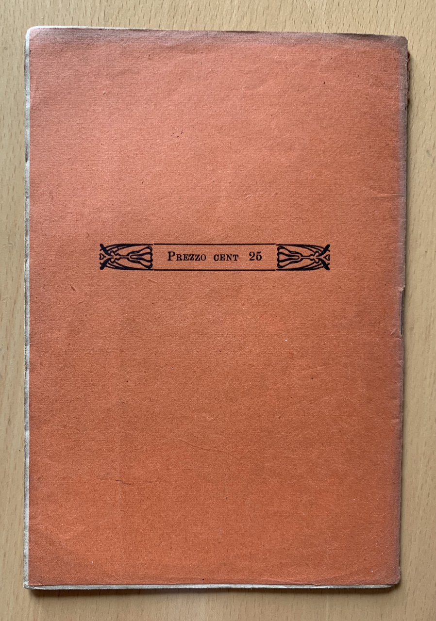 ed. 1913. XVI/32/brossura in carta leggera arancione con titoli e ornati in nero. Stato buono (lieve usura della copertina ai margini - copertina e pagine brunite - timbr1 blu di possesso e catalogazione al primo piatto della copertina - firma di possesso ad inchiostro nero in frontespizio traslatasi per contatto al secondo piatto della copertina).