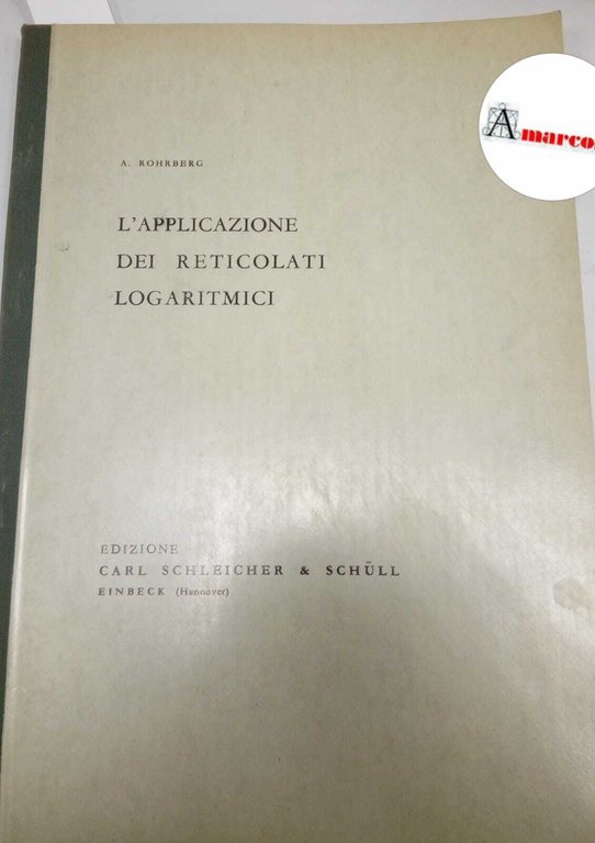 Rohrberg Albert, L'applicazione dei reticolati logaritmici, Carl Schleicher & Schull, 1954?, in-4, brossura, pp. 32 + tavole, ill. b/n, ottimo.