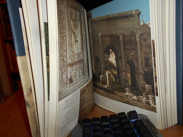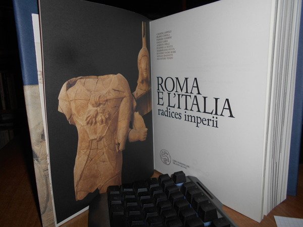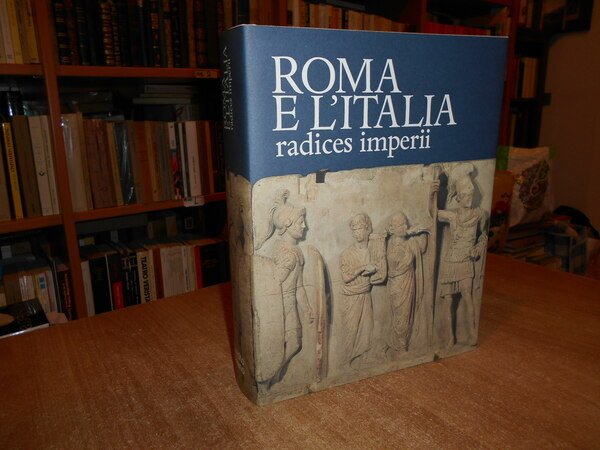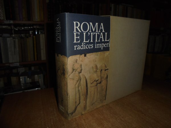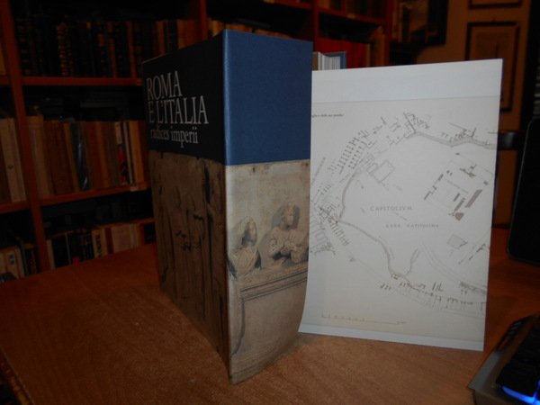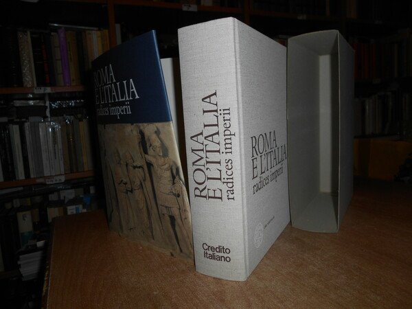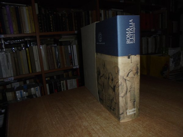 AA. VV. Milano, Libri Scheiwller per Credito Italiano, 1990. ROMA e l' ITALIA radices imperii. In-4° piccolo, tela edit. con titoli sul piano e al dorso, sovracopertina ill. a col. (5), 672, (3) pp. con carta più volte ripiegata inserita nel libro e innumerevoli illustrazioni a colori anche a piena pagina e in tavole ripiegate n.t. In stato di nuovo con astuccio in cartoncino muto. Uff. stanza TV. mob. fronte nostro in alto.