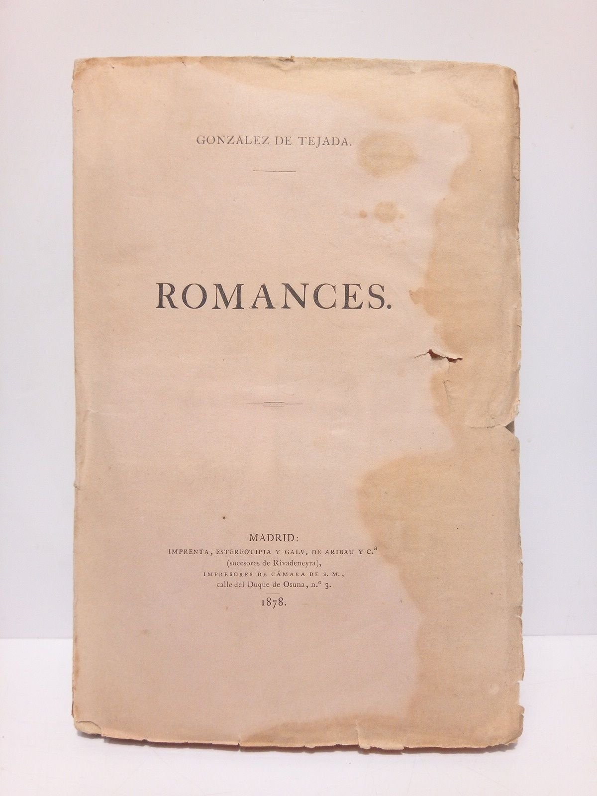 Madrid: Imp.de Aribau y Cia., 1878.- 334 p.; 4º menor (21,5 x 14,3 cm); Intonso; Rústica Ed.* La cubierta y las 5 primeras hojas, con una mancha de humedad en el margen externo y pequeñas faltas. LITERATURA Y FILOSOFÍA ESPAÑOLAS DE LOS SIGLOS XIX-XXI Y SU HISTORIA EN GENERAL