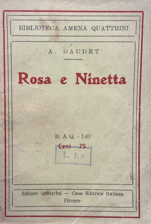 Brossura- 64 pp., 16 cm. Coll.: Biblioteca amena Quattrini. Cond.: buono, fioriture alla cop., lacerazioni alle ultime due pagg. 16 Buono (Good) Buono