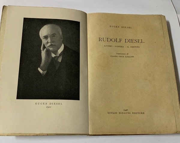 La biografia dell'inventore del motore Diesel, scritta dal figlio Eugen. Due tavv. in bianco e nero ft. contenenti tre fotografie, oltre al ritratto dell'Autore in antiporta. Si tratta, con ogni probabilità dell'unica pubblicazione in lingua italiana sulla figura di Diesel, personaggio entrato a pieno titolo nella storia dell'industria europea - DETTAGLIO DELLE CONDIZIONI : Leggeri segni d'uso in coperta e fioriture interne. Raro da reperirsi in buone condizioni, così come si presenta il nostro esemplare - (50f).