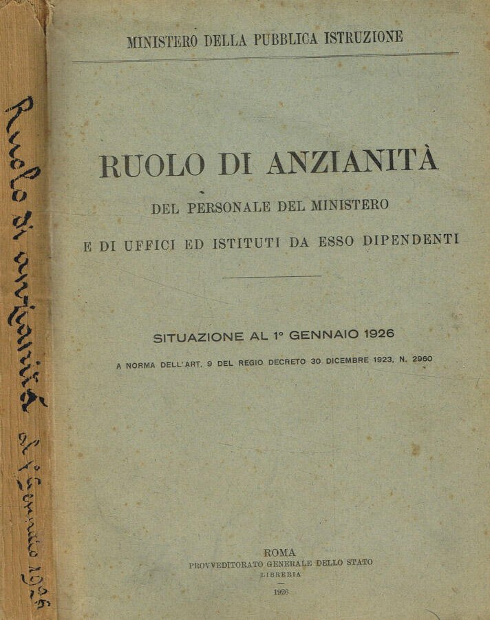 Ruolo di anzianità del personale del ministero e di uffici ed istituti da esso dipendenti. Situazione al 1 gennaio 1926