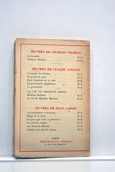 254 pages. (12x19cm). Broché. Non rogné. Couverture imprimée. Coins émoussés. Salissures. Quelques déchirures. Charnière fendue. Dos fendillé. Quelques petits accidents au dos. Bon état intérieur.