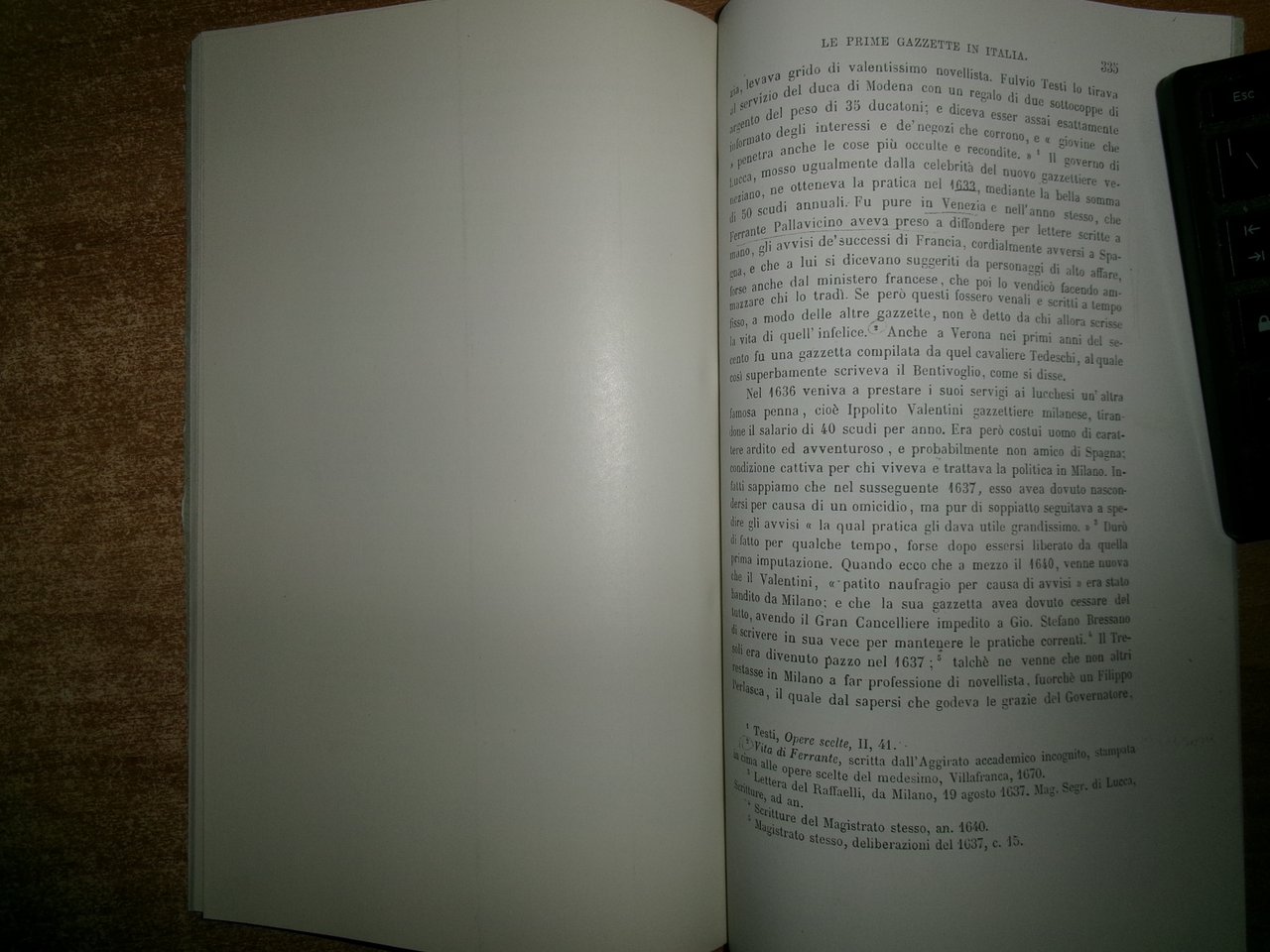 S. BONGI. Le prime Gazzette in Italia (estratto fotocopiato)