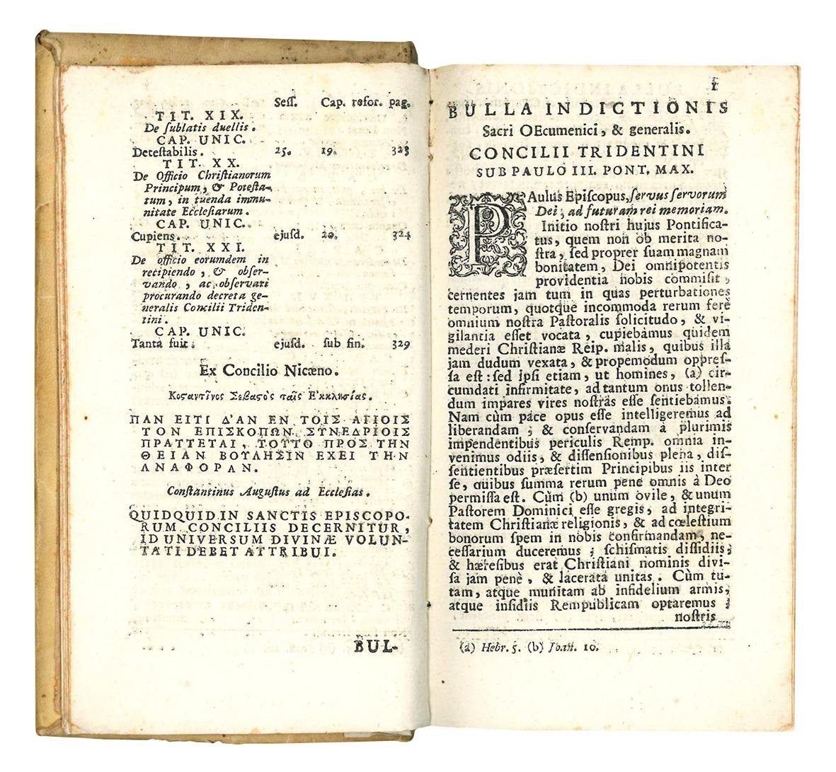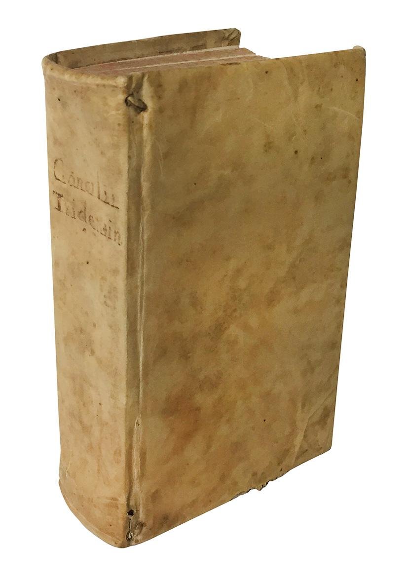 In 16mo (mm 137x76); pp. [18], 462, [48]. Vignetta calcografica al frontespizio (Pontefice con Santo Sacramento nella mano destra), capilettera xilografici. Lievi fioriture ad alcune carte. Pergamena coeva con nervi passanti. Titolo manoscritto al dorso. Tagli marmorizzati. Piccoli forellini ai piatti, minima mancanza al margine inferiore del piatto anteriore.