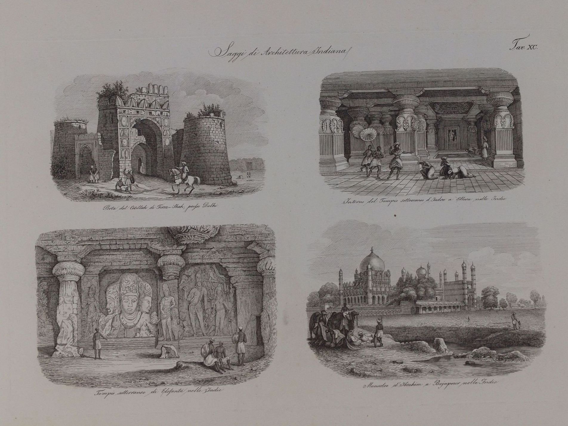 SAGGI DI ARCHITETTURA INDIANA Porta del Cotillah di Firoz Shah presso Delhi Interno del Tempio sotterraneo d’Indra a Ellora nelle Indie Tempio sotterraneo di Elefanta nelle Indie Mausoleo d’Ibrahim a Bejapour nelle Indie