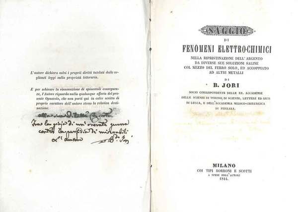 Saggio di fenomeni elettro-chimici nella ripristinazione dell'argento da diverse sue soluzioni saline col mezzo del ferro solo, ed accoppiato ad altri metalli