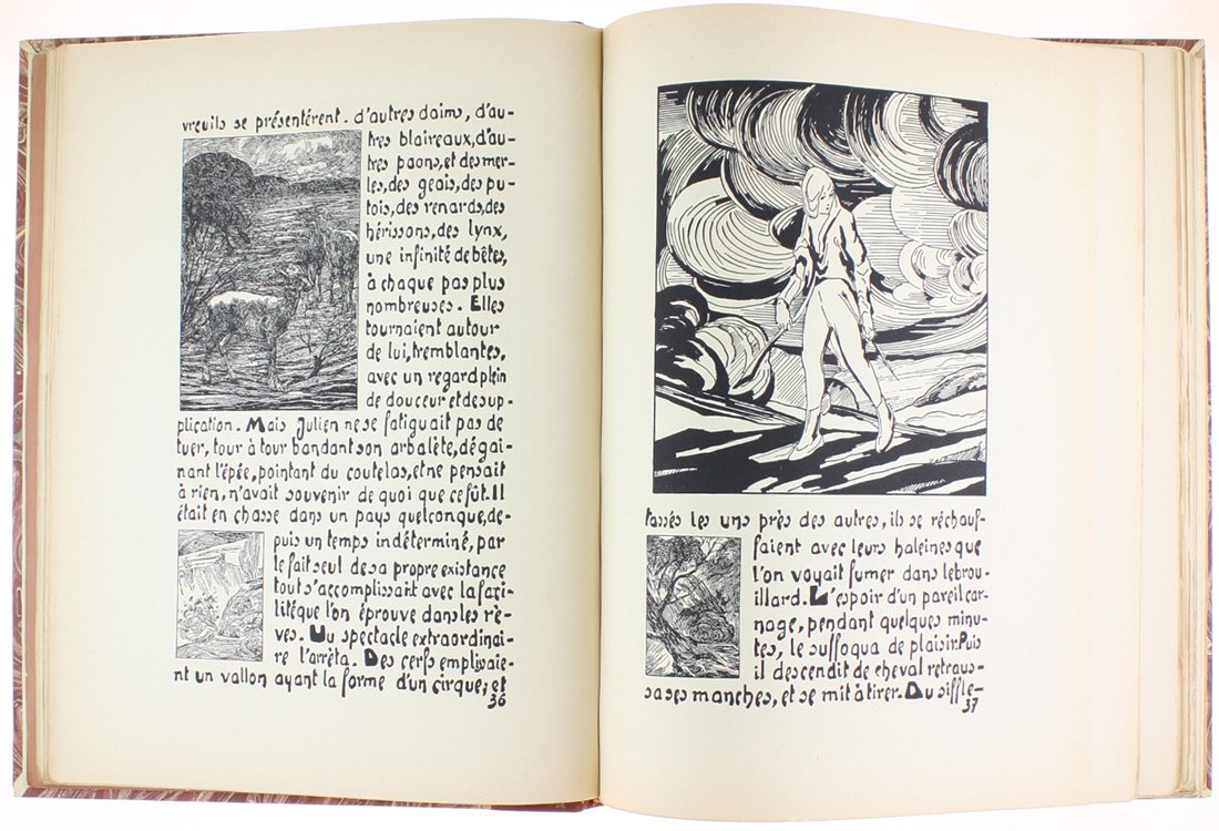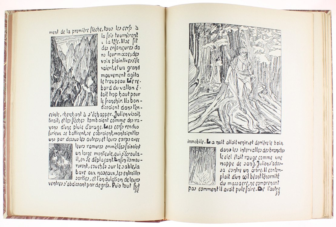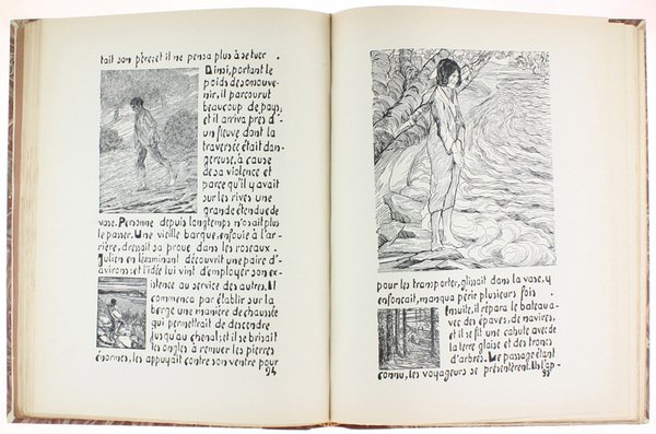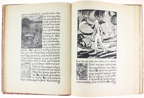 (Codice EK/0323) In 4º (33,5x26 cm) XII-110 pages. Exemplaire de la sèrie de 500 sur papier luxe Alfa, (ex. n. 11). Texte et illustrations entièrement gravés à la main, centaines de dessins, vignettes, initiales xilografiées. Dans la deuxième partie un choix de l'oeuvre d'Adrien Godien: 8 pp. avec presentation par Henri Béraud, 17 planches en couleur et noir contrecollées, 6 planches sépia, 16 pages de dessins. Reliure demi-veau rouge, nerfs et titre or, plats et gardes marbrés. Couvertures originales gardées. Parfait état. ~~~ SPEDIZIONE IN ITALIA SEMPRE TRACCIATA