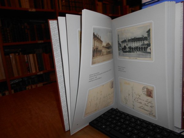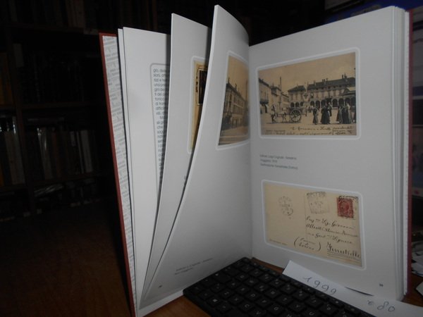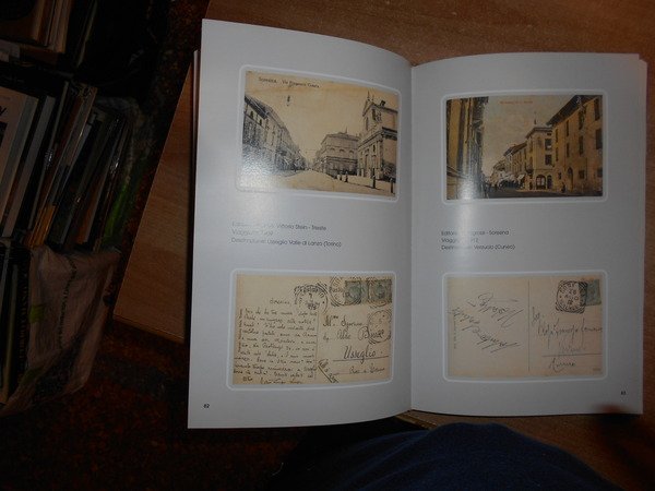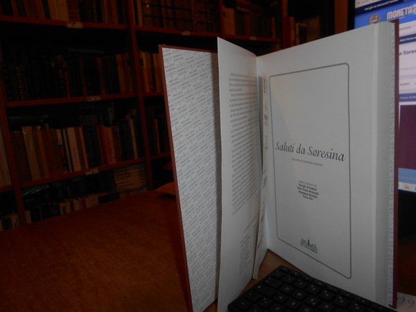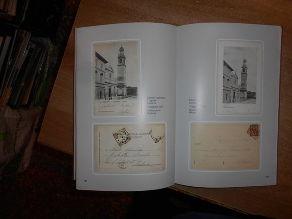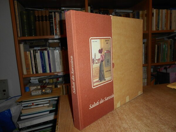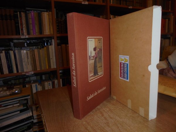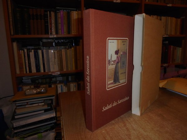 dalle Collezioni di Giorgio Armelloni - Gian Paolo Mainardi - Giuseppe Monfrini - Flavio Pini. Soresina, Grafiche Rossi, 1999. SALUTI DA SORESINA raccolta di cartoline d' epoca. In-4°, tela edit. con figura a colori applicata sul piano anteriore. 250. (1) pp. con numerose riproduzioni a colori in bicromia e in bianco e nero di cartoline d' epoca. Libro come nuovo. Astuccio con segni d' usato. Uff. B - 3 - II - 2