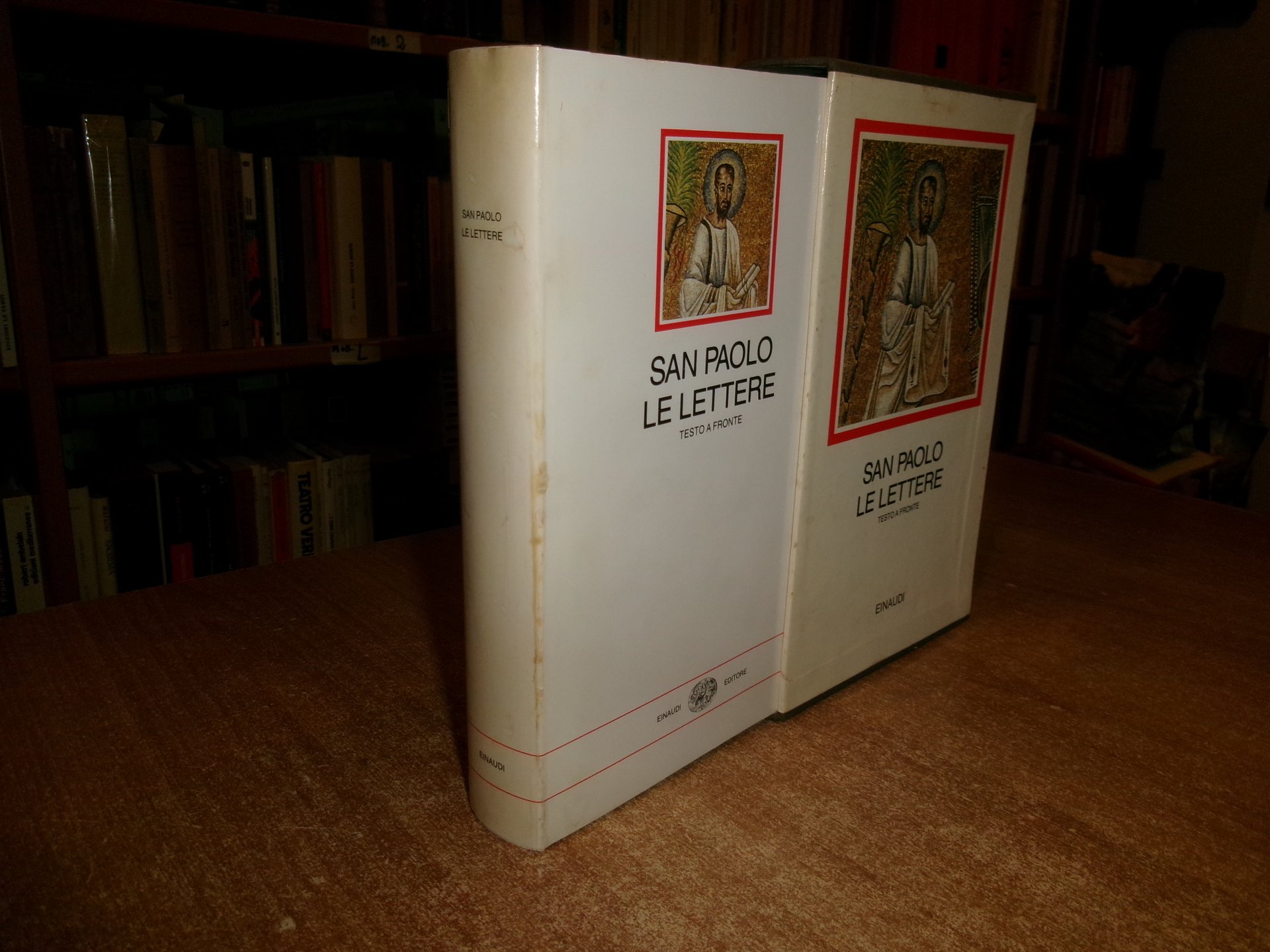 SAN PAOLO LE LETTERE con testo greco a fronte. Testo greco a fronte a cura di CARLO CARENA. In-8° , tela edit. con sovracopertina ill. a col. XLVI, 327, (1) pp. con numerose illustrazioni a colori anche in tavole ripiegate f.t. Sovracopertina e cofanetto con lievi segni d' uso con alcune evidenziature, scritta a matita in poche pagine ma ben conservato. Neg. mob. 19